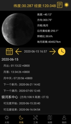 4¡¢»ù±¾¹¤¾ß£ºÌ«ÑôλÖÃÅÌËã¡¢ÔÂÁÁ¾àÀëÏÔʾ¡¢ÒøºÓÖÐÐĿɼûʱ¼äÕ¹Íû