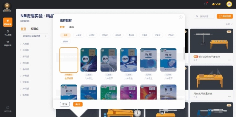 ÎïÀíʵÑéDIY²Ù×÷Á÷³Ì£º×óÉϽÇÑ¡Ôñѧ¶Î£¬ÓÒÉϽÇн¨×ÊÔ´£¬½øÈëÄ£¿éÈçµçÓë´Å¡£