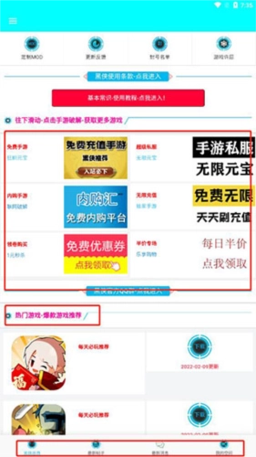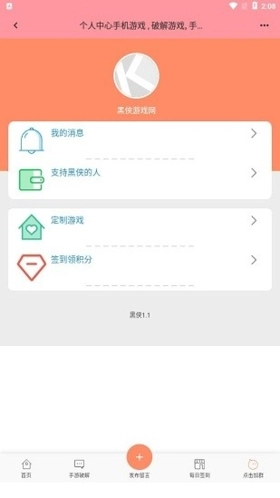 装置黑侠APK游戏盒并翻开应用后,能看到它包括多个版块。