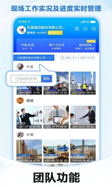 我们会把团队成员的所有照片举行汇总,并运用智能分类的方法来存储这些照片。治理员可以一键将照片导出到电脑,这样就能更利便地审查照片了。