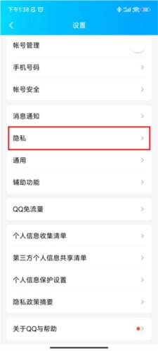 点击“隐私”;