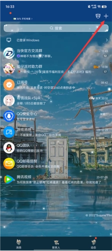第一步,翻开手机QQ,进入新闻页面后点击右上角的+图标。
