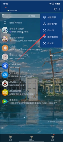 第二步,在弹出菜单中点击扫一扫选项。