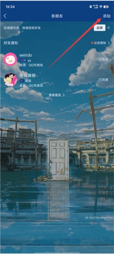 第六步,进入新朋侪页面后点击右上角的添加按钮。