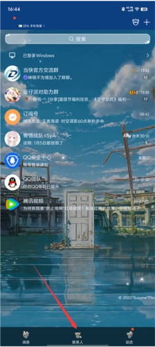 举行QQ,点击下面的联系人。
