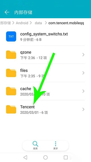 翻开“com.tencent.mobileqq”文件夹后,点击进入“Tencent”文件夹。