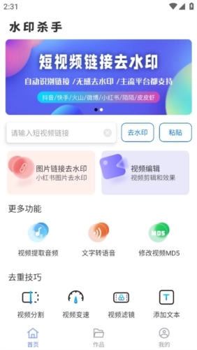ˮӡɱÊÖÊÇÒ»¿î¹¦Ð§Ç¿Ê¢µÄȥˮӡ¹¤¾ß£¬ÄÜÇáËÉÆÊÎö¸÷´ó¶ÌÊÓÆµÆ½Ì¨µÄÊÓÆµÓëͼƬ£¬È¥³ýˮӡºÁÎÞÄѶȣ¡¸ÃÈí¼þΪÓû§ÌṩÁ˶àÖÖÊÊÓù¦Ð§£¬°üÀ¨È¥³ýÊÓÆµË®Ó¡¡¢È¥³ýͼƬˮӡ¡¢Ìí¼ÓÒôƵÎļþµÈ¡£±ðµÄ£¬Ëü»¹¾ß±¸ÊÓÆµÌáÈ¡¡¢ÊÓÆµ±äËٷת¡¢ÎÄ×ÖתÓïÒô¡¢ÅäÒôµÈ¹¦Ð§£¬Óû§Ò²¿ÉÔÚ×Ô¼ºµÄÊÓÆµÉÏÌí¼ÓרÊôˮӡ£¬ÓÐÐèÇóµÄÓû§½Ó´ýǰÀ´ÌåÑ飡