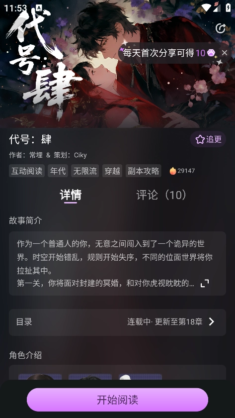 4、选择故事后即可进入阅读界面,剧情分支由选择决议走向。
